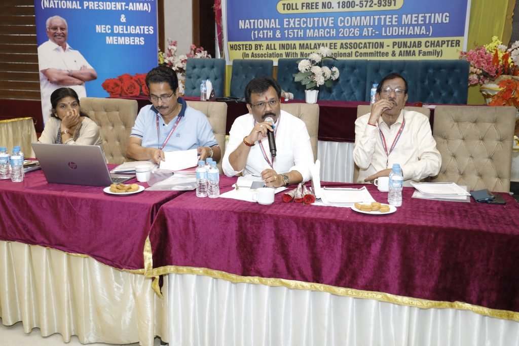 The National Executive Committee (NEC) Meeting of the All India Malayalee Association (AIMA) was successfully held on 14th and 15th March 2026 at Hotel Samrat Regency, Ludhiana, Punjab. The meeting brought together national leaders, state representatives, and key functionaries of AIMA from across India to review the organization’s progress, strengthen coordination among state units, and plan future initiatives.
