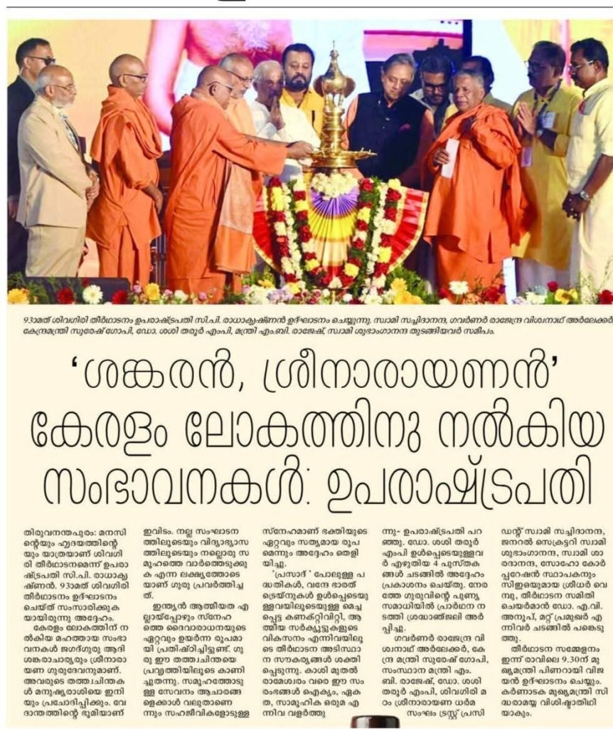 The 93rd Sivagiri Theerthadanam was honoured by the gracious presence of several of the nation’s most respected leaders and thinkers. The event offered a rare and meaningful opportunity to interact with distinguished dignitaries, including: